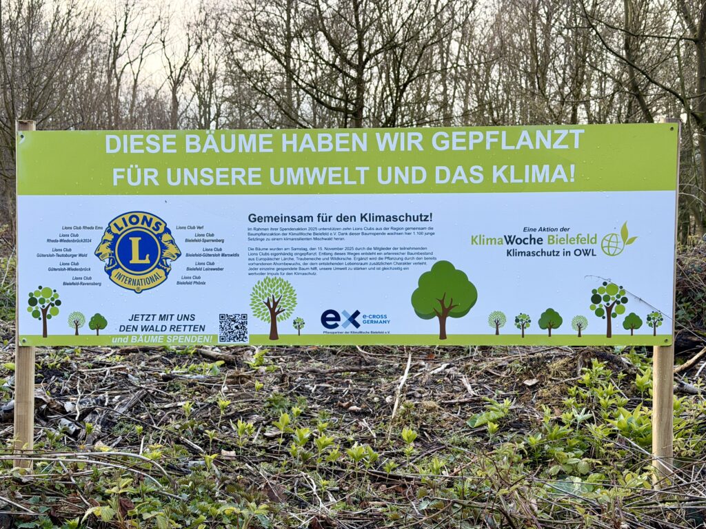 In Zusammenarbeit mit der KlimaWoche Bielefeld haben zehn Lions Clubs der Region Westfalen-Lippe eine beeindruckende Baumpflanzaktion umgesetzt. Rund 1.300 junge Bäume wurden in einem Waldgebiet in Bielefeld-Quelle (Einschlingen) gepflanzt – ein Projekt, bei dem Standortwahl, Baumarten und Ablauf der Pflanzung fachlich fundiert nachhaltig umgesetzt werden konnten.