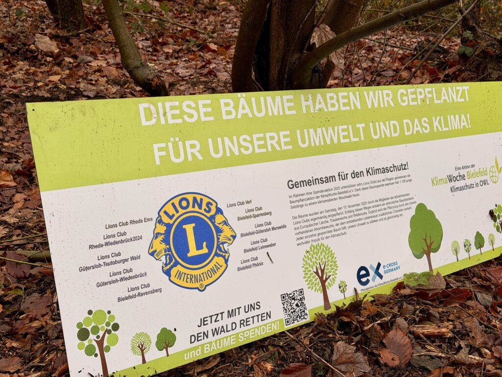 In Zusammenarbeit mit der KlimaWoche Bielefeld haben zehn Lions Clubs der Region Westfalen-Lippe eine beeindruckende Baumpflanzaktion umgesetzt. Rund 1.300 junge Bäume wurden in einem Waldgebiet in Bielefeld-Quelle (Einschlingen) gepflanzt – ein Projekt, bei dem Standortwahl, Baumarten und Ablauf der Pflanzung fachlich fundiert nachhaltig umgesetzt werden konnten.